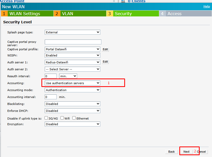 Se configuran los parámetros del portal cautivo.