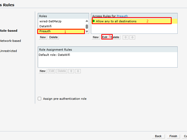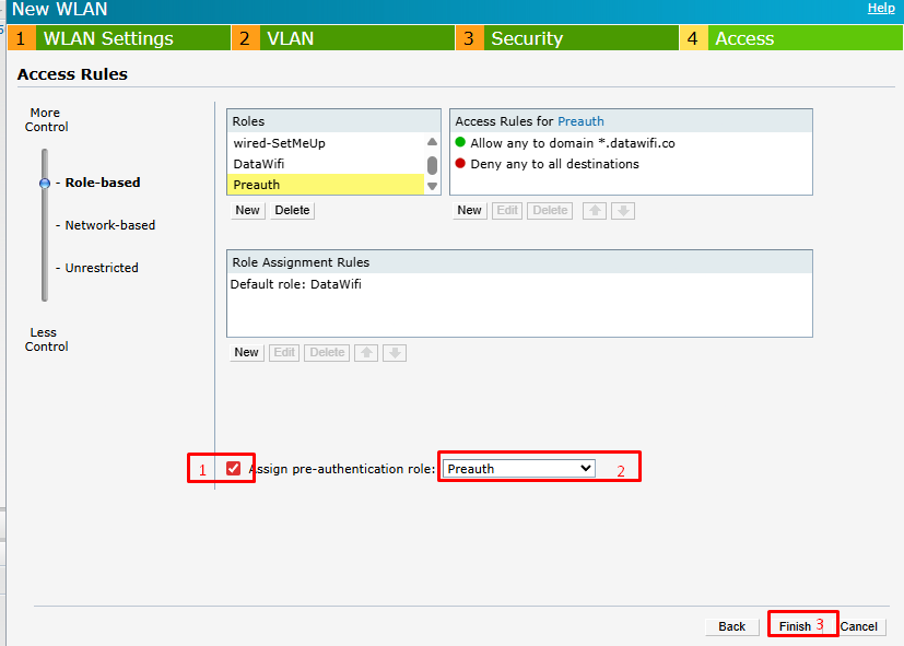Se asigna el rol de preautenticación al SSID.