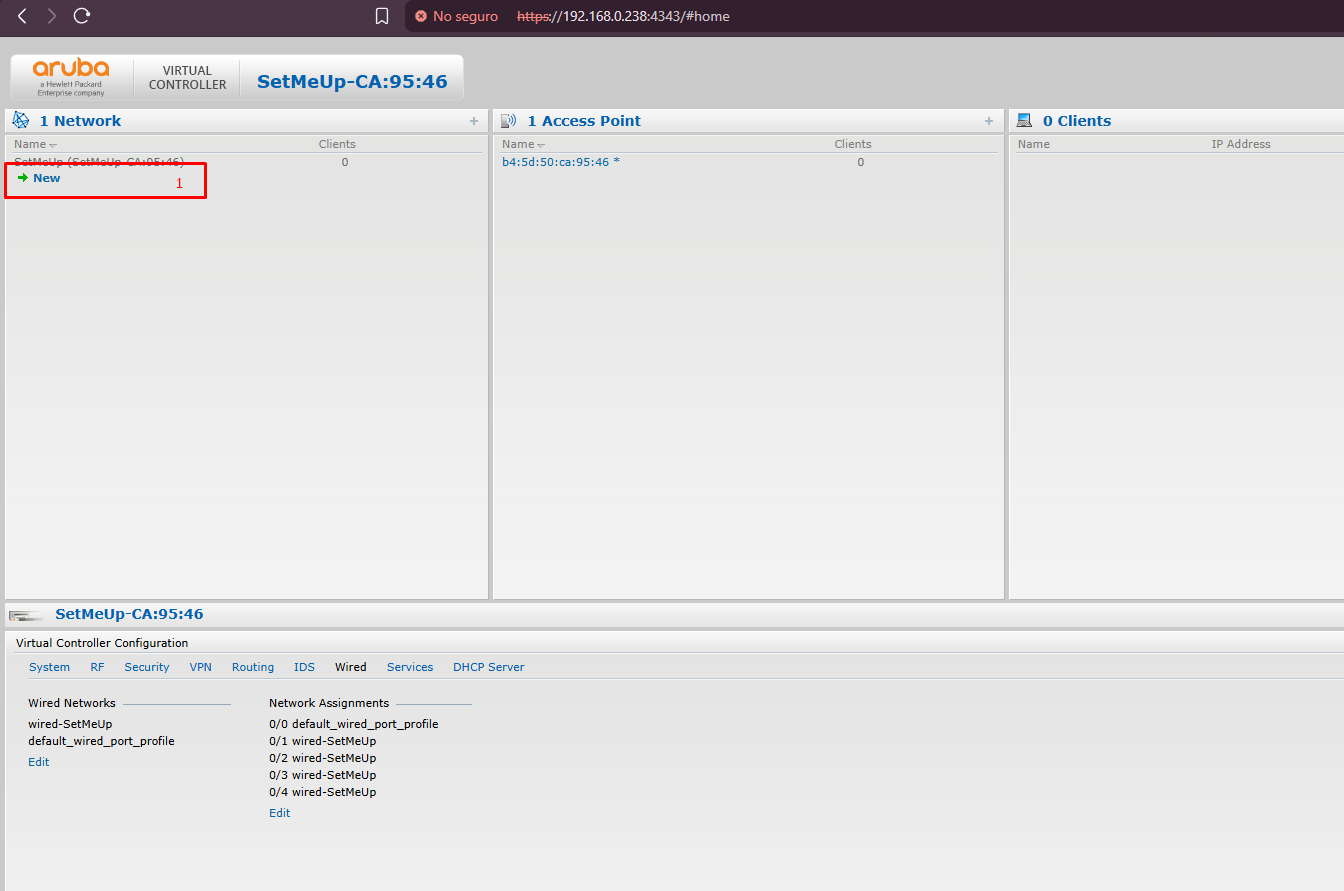 Con la información de la red para este caso: "Infraestructura: ARUBA VIRTUAL CONTROLLER"