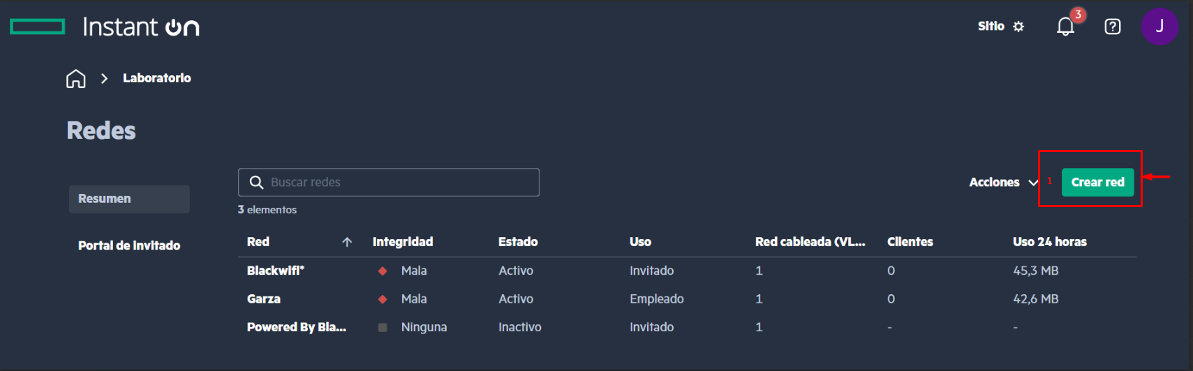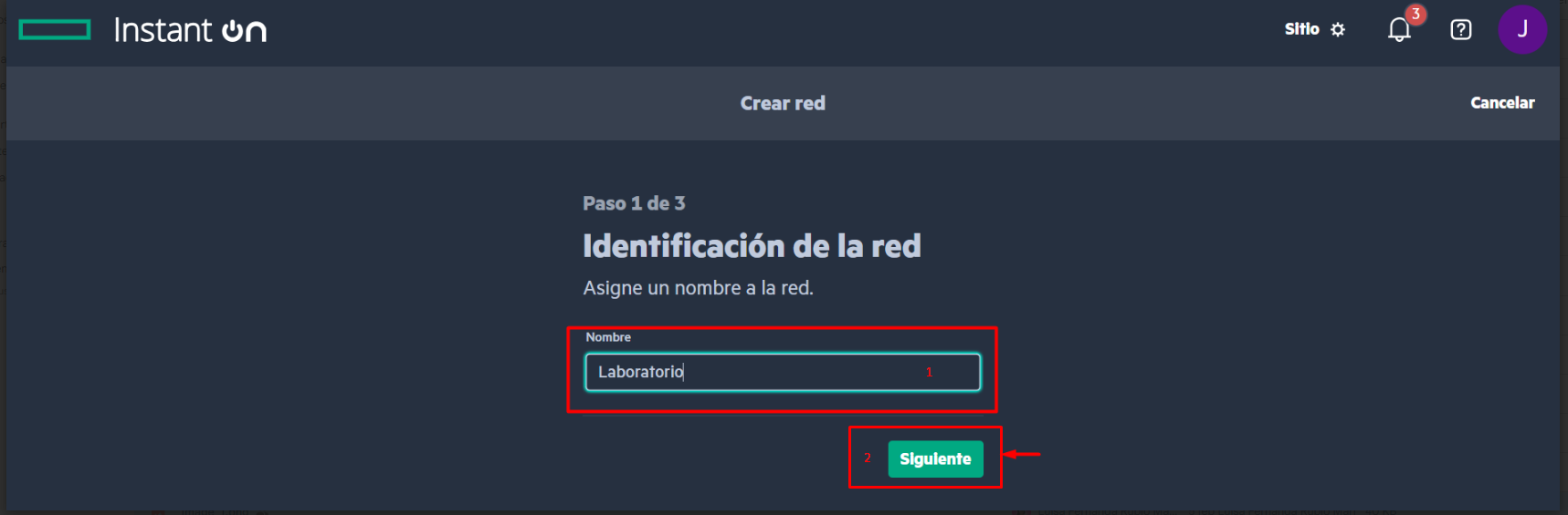 1 | Crear red | Dar click en la opción Crear red para iniciar la creación del SSID |