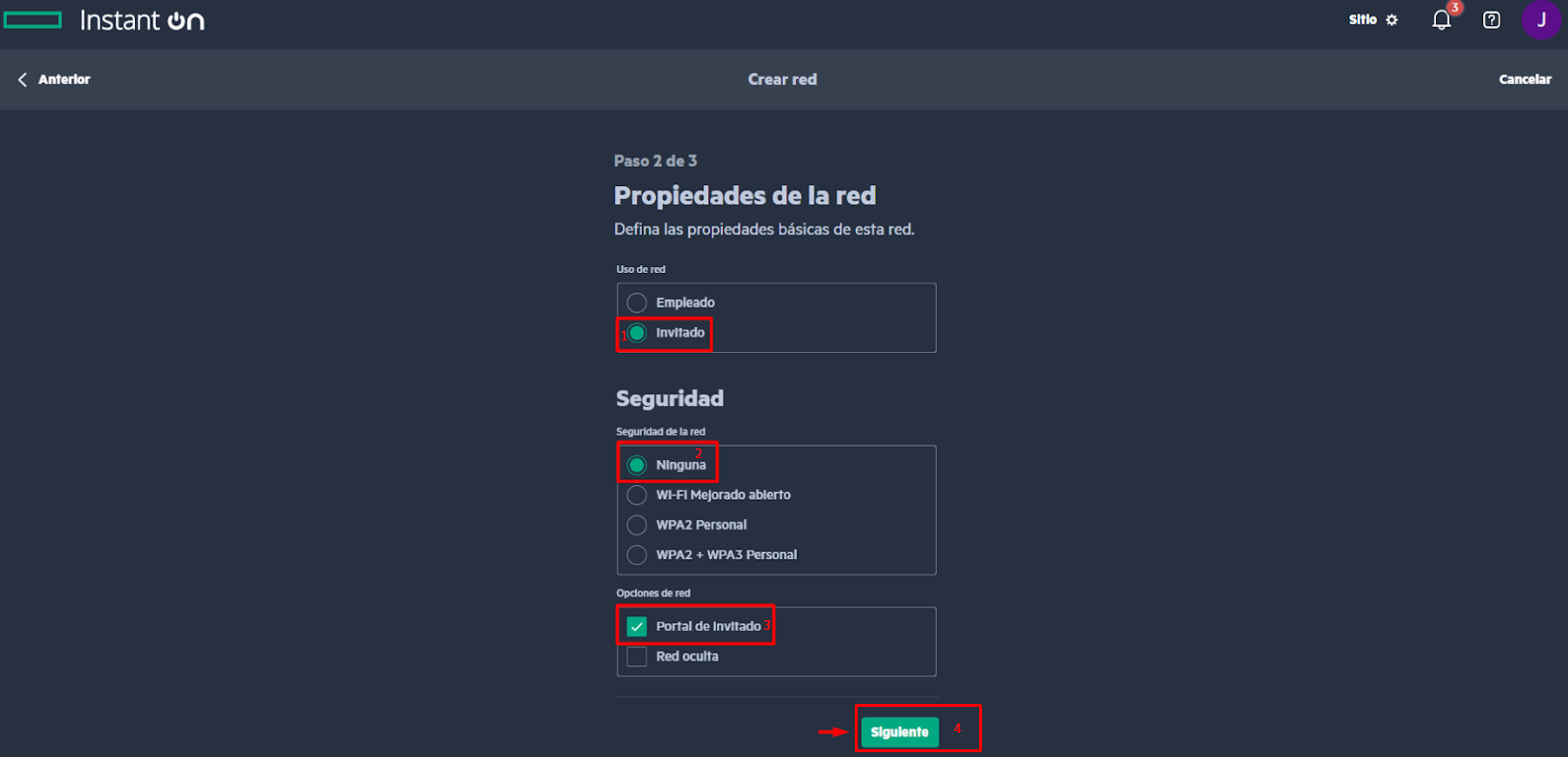 3 | Opciones de red | Seleccionar Portal Invitado |