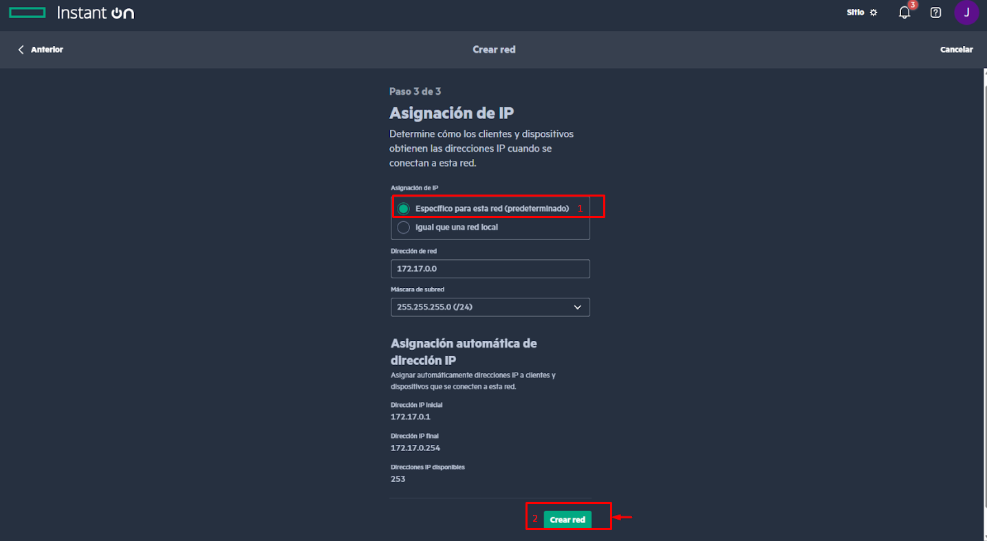 2 | Crear red | Dar click en Crear red para finalizar la configuración del SSID |