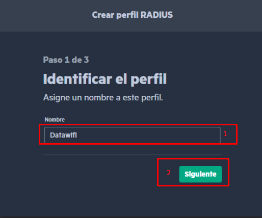 1 | Crear perfil RADIUS | Click en Crear perfil RADIUS |
