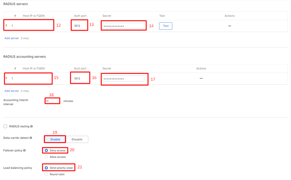13 | Auth port | 1812 |