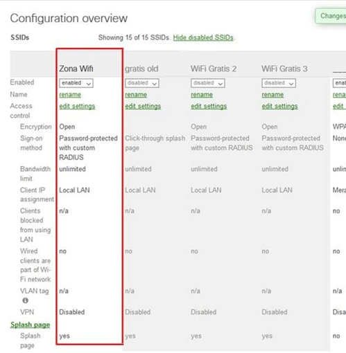 Wireless > Configure > Splash page