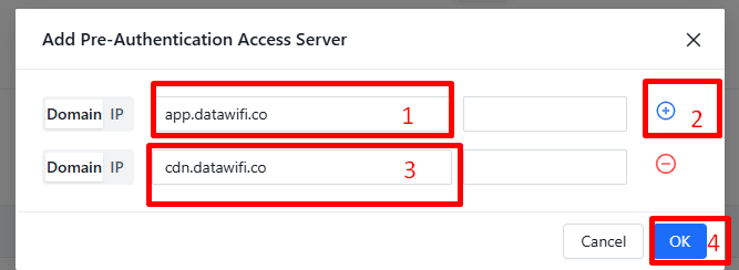 1 | Agregar servidor | Click en Add en Pre‑Authentication Access Server List |