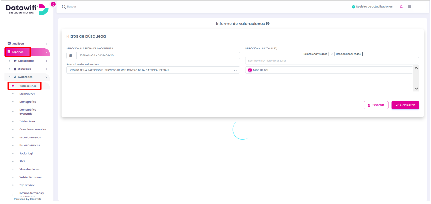 3 | Valoraciones | Dar clic para ingresar a la consulta de los datos sobre las valoraciones. |