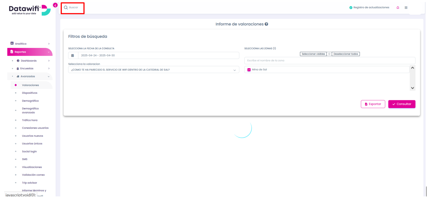 8 | Exportar | Allí permite descargar una base de datos en archivo .csv con la información de la consulta. |