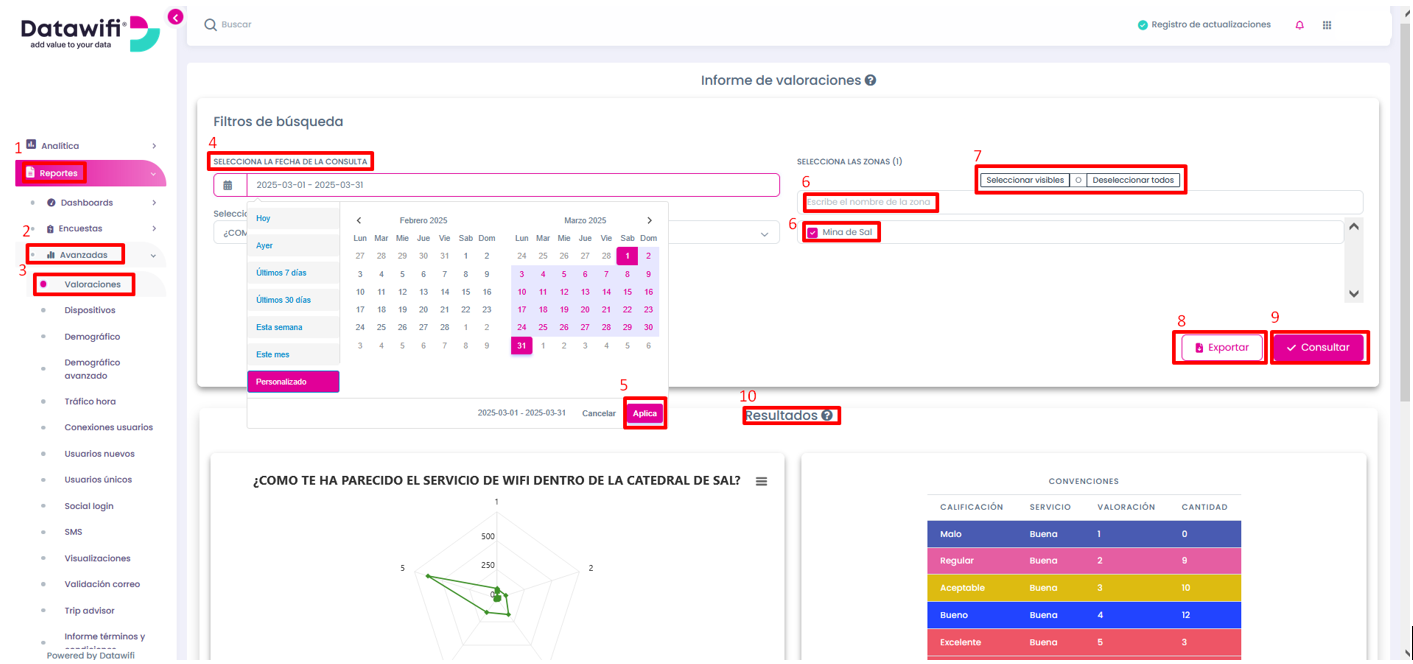 4 | Selecciona la fecha de la consulta | Allí permite realizar la selección sobre días, semanas o hasta un máximo de 31 días para la consulta de los datos. |