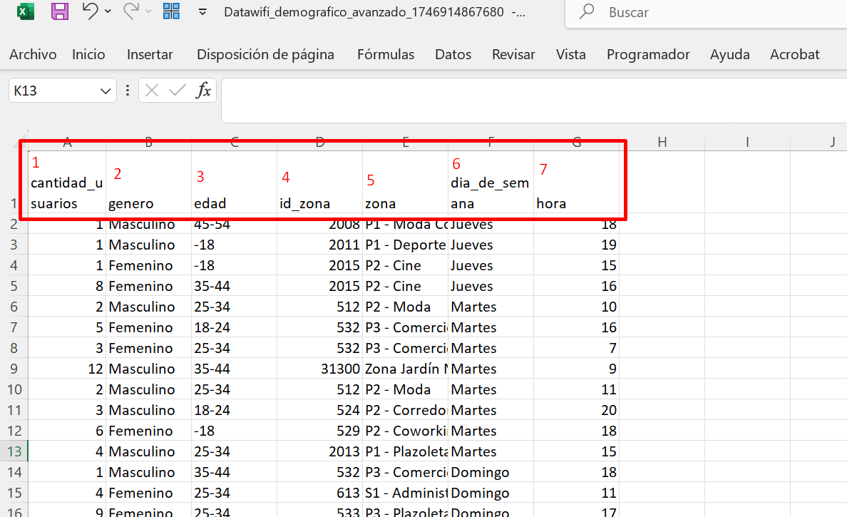 Al descargar la base de datos de la consulta realizada, se visualizarán los siguientes datos: