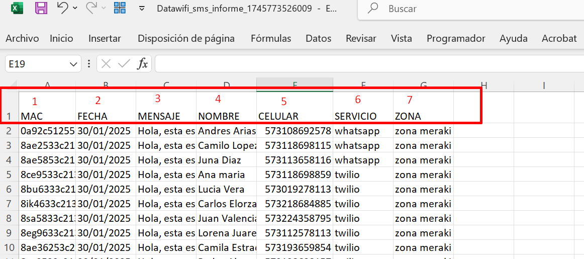 6 | Servicio | Allí se identifica el medio por el cuál se realizó el envío del mensaje al usuario. |
