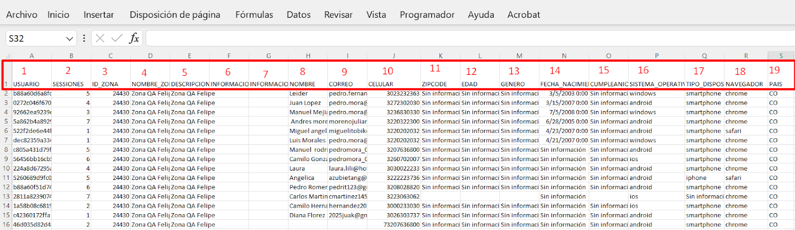 15 | Cumpleaños | En esta columna se registra el Cumpleaños del usuario que realizó conexión en la zona. |