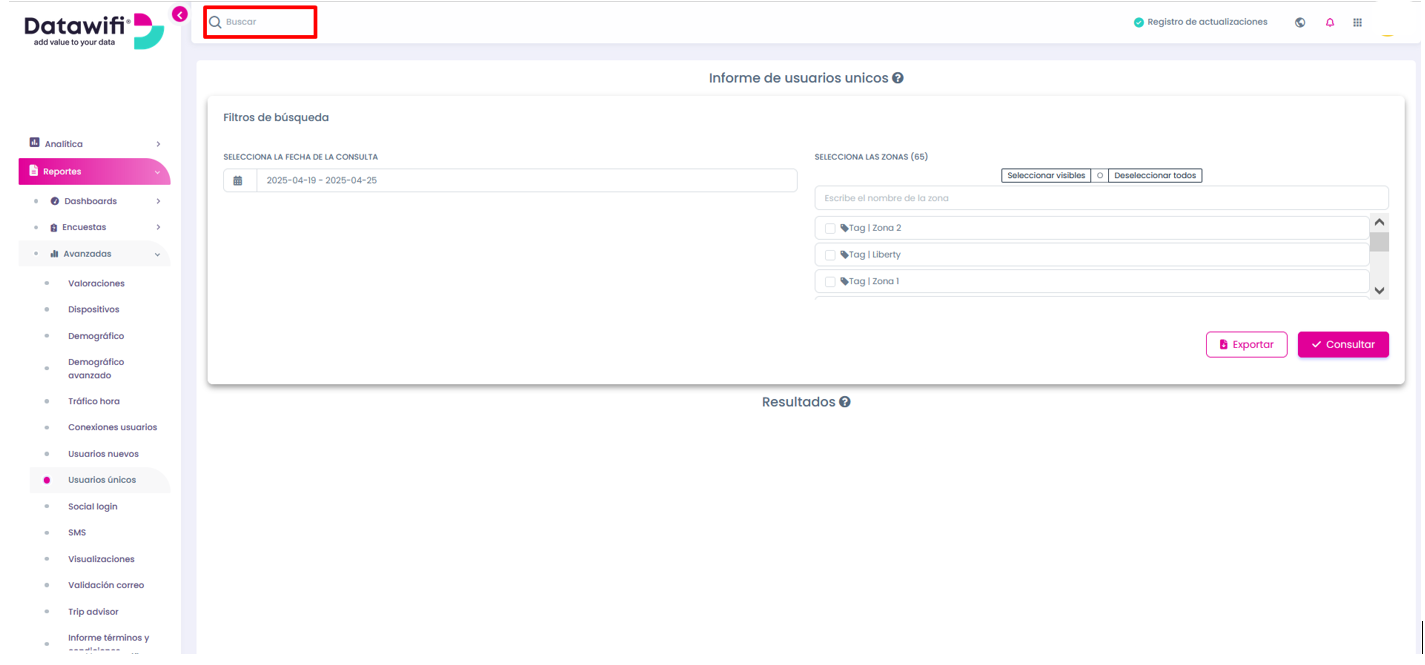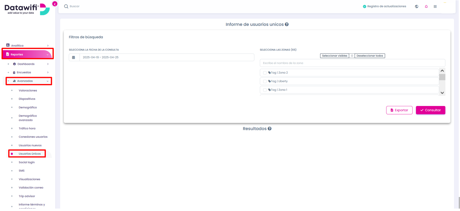 Para realizar todo el proceso de consulta sobre usuarios únicos, realiza el proceso que se presenta a continuación: